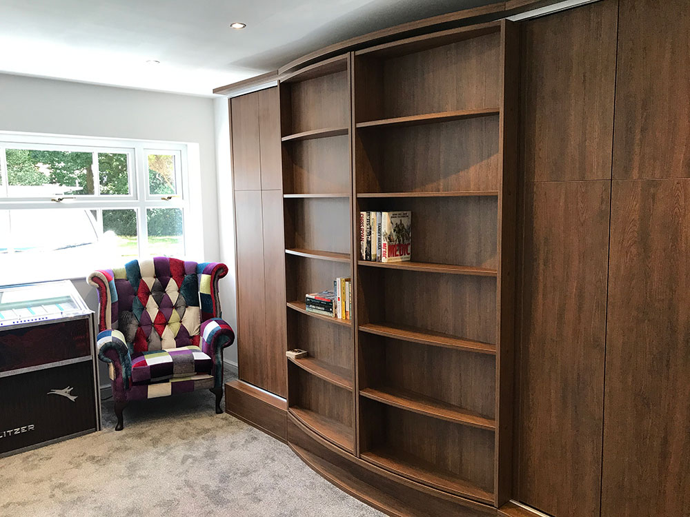 The built in storage unit has been designed to hide a day bed. It creates the perfect Sitting room layout with instant conversion to a Bedroom, a superb addition to any Home.