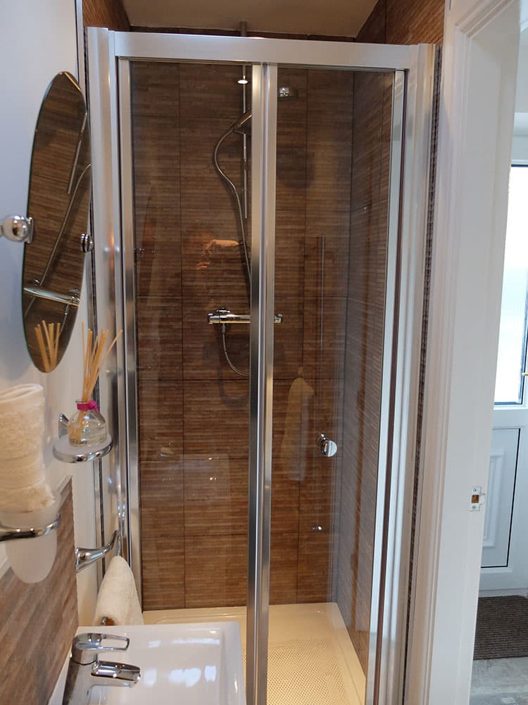 - Gravity Fed Shower Control, Shower Tray and Enclosure