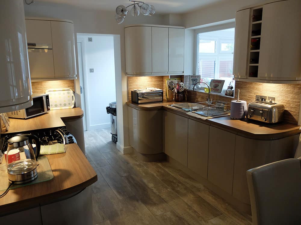 More Living Space specialise in Single and double Garage conversions. This Garage conversion completed by More Living Space, produced a high quality Kitchen, Utility Room with Shower and WC, complete with Flooring, Decoration and Window Blinds. The Kitchen was supplied by Howdens, the flooring is Quick Step Classic Range.