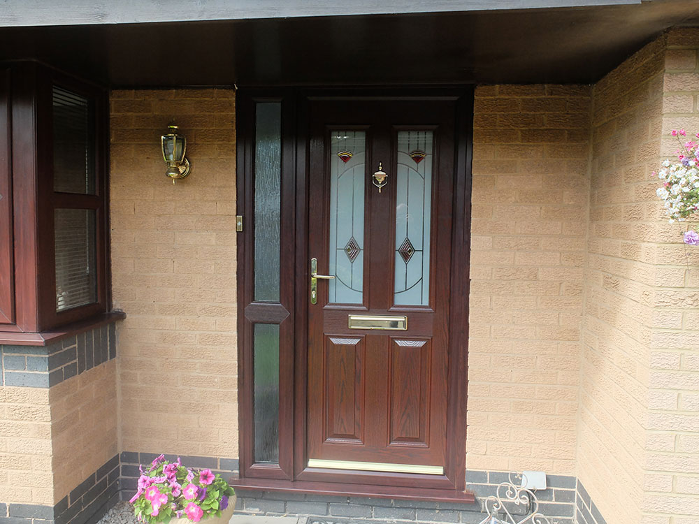 - Safe Guard Woodgrain Composite Door – Caernarfon style with Tasman Glass